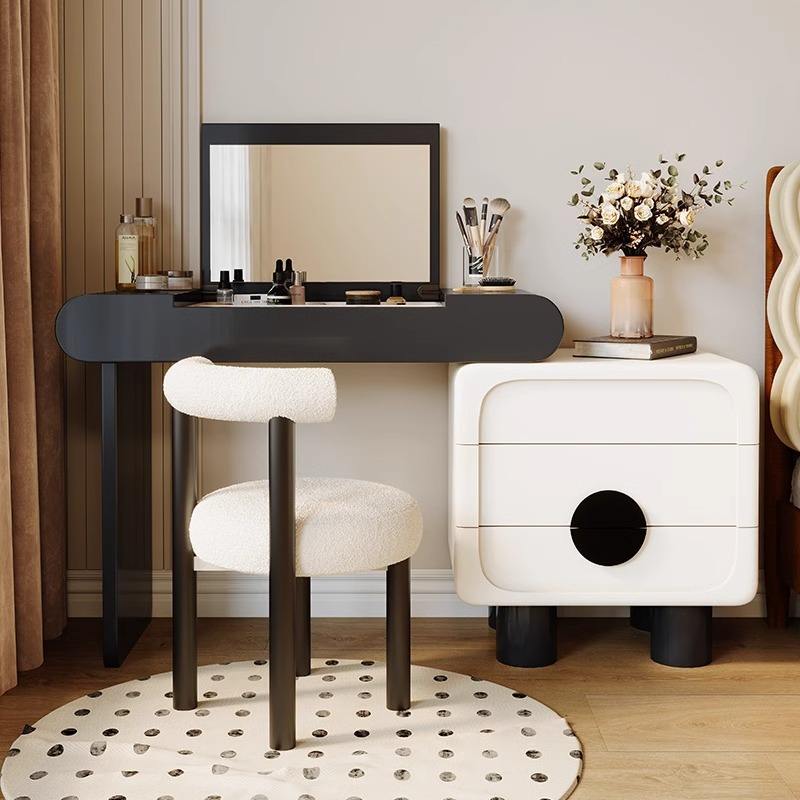 New Flip up Dressing Table Solid Wood Bucket Cabinet Integrated Cream Style Small House Makeup Mirror Scalable Makeup Table
